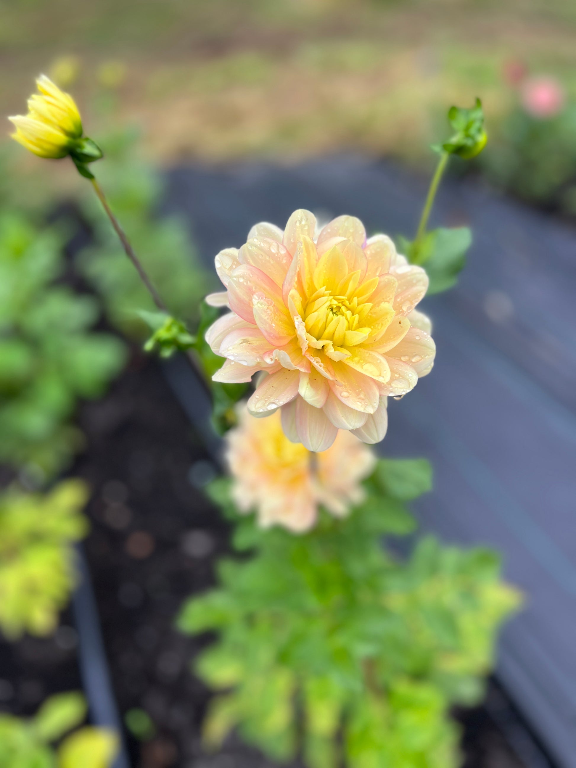 Day Dreamer Dahlia enchants with open, delicate petals in glowing apricot-peach that fade into the softest blush as the season unfolds. With its buttery yellow center and waterlily-like charm, this bloom feels pulled straight from a dream.