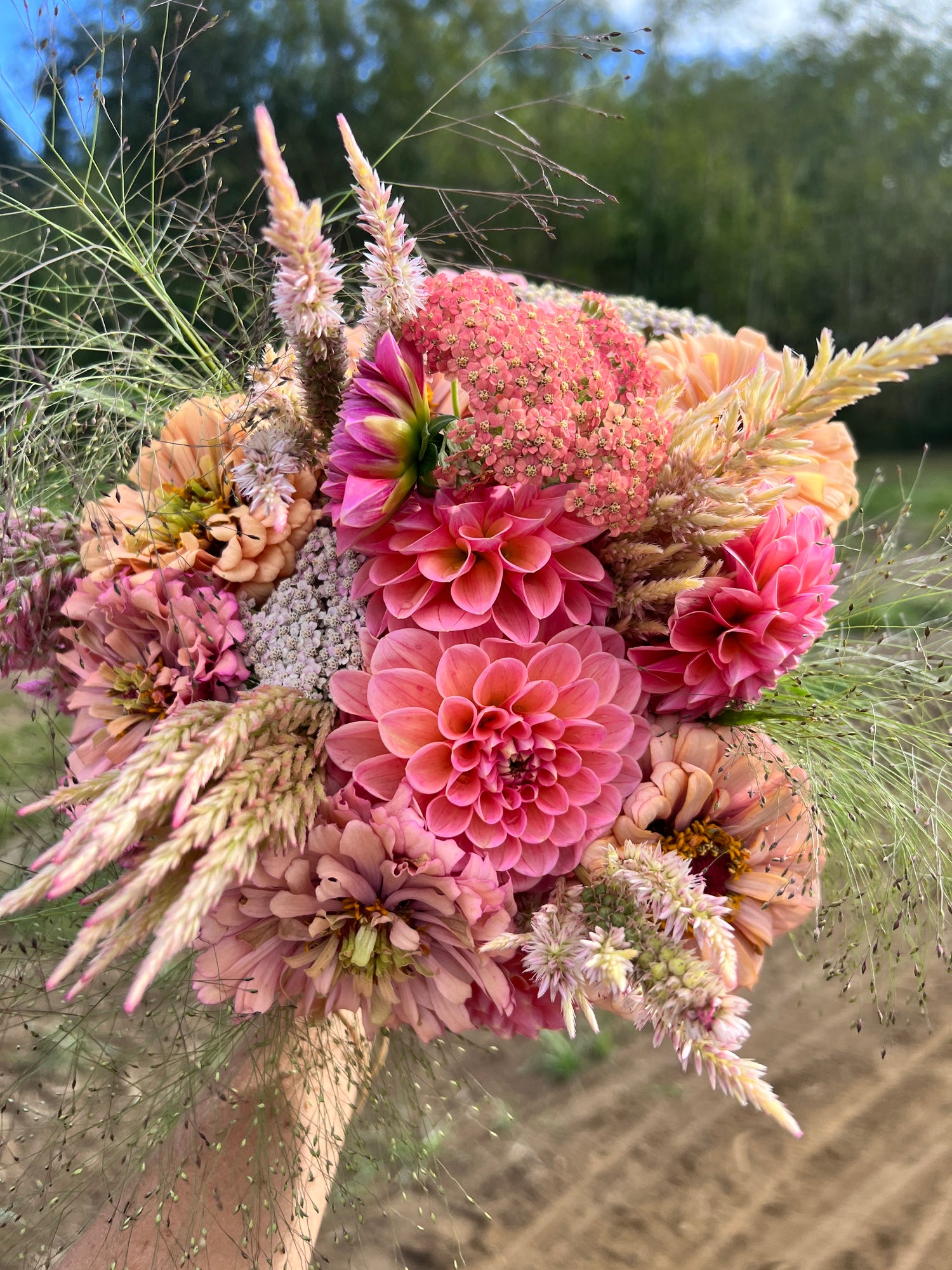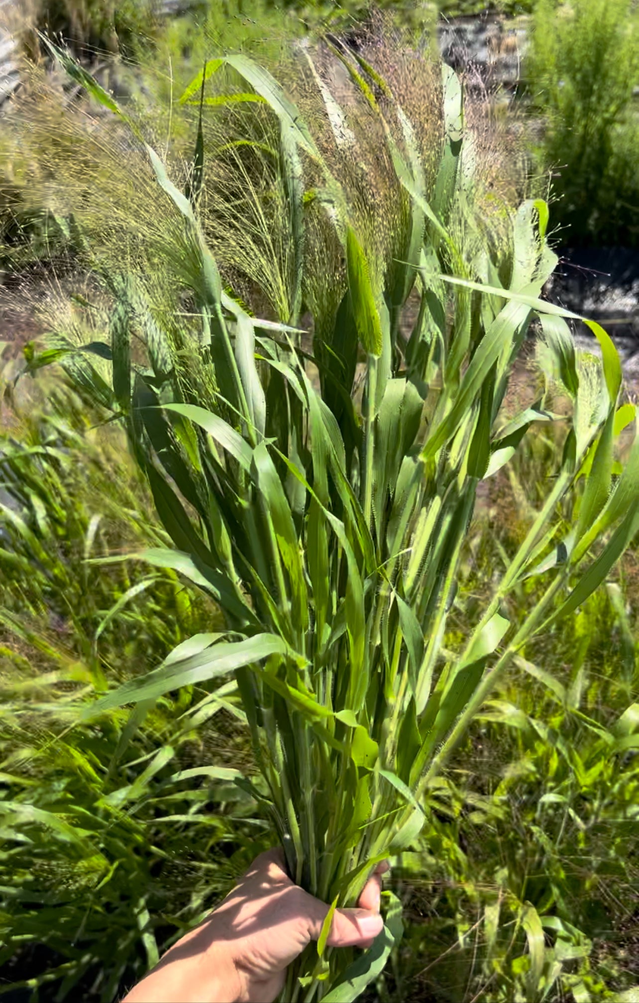 Frosted Explosion is a fun grass that adds a little sparkle to your bouquets. It’s easy to grow and will reseed itself in mild climates. Can be used fresh or dried.
