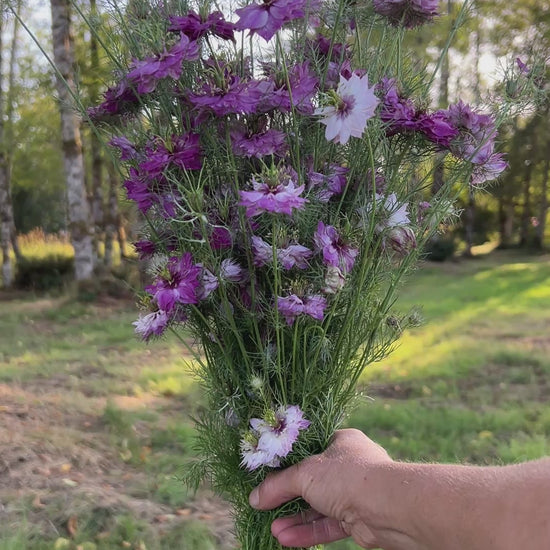These Nigella ‘Miss Jekyll Rose’ seeds were processed, cleaned, and packed entirely by Eleanor (our 6yo), right here on our farm.