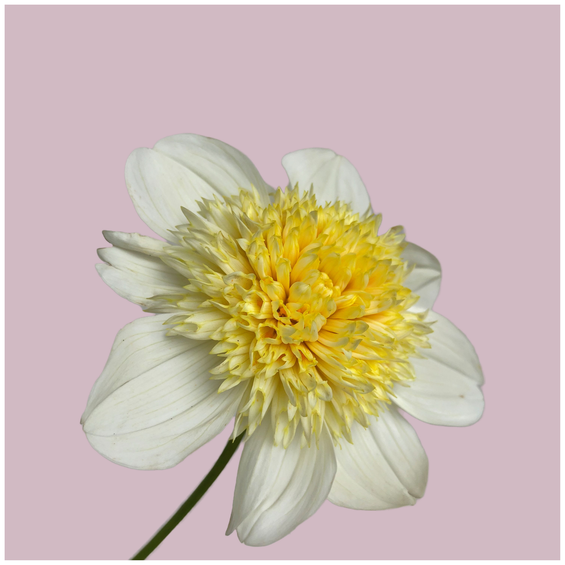 The Platinum Blonde dahlia will bring soft hues and unusual texture to your garden. Its powderpuff center of frilly, buttery yellow petals is surrounded by a creamy white halo. Growing on long stems it's perfect as a cut flower.
