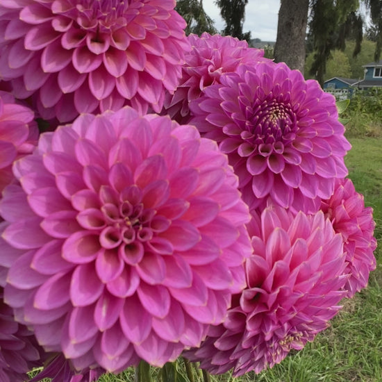 Skipley Spot of Gold dazzles with its dusty magenta petals, each delicately tipped with gold for a magical touch. This prolific ball dahlia blooms continuously on tall, sturdy stems, making it a standout in bouquets and gardens alike.