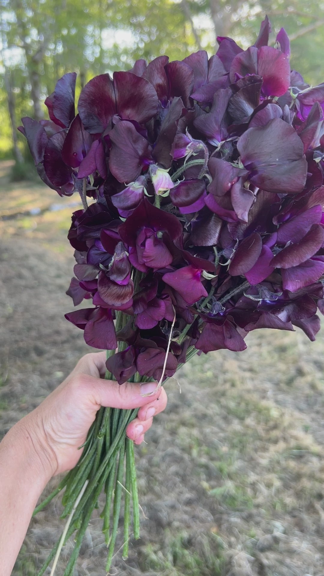 This richly hued sweet pea, with warm chocolaty-maroon blooms, makes a bold statement in the garden. Bred by Brewer and Unwins, it boasts strong, long stems and an irresistible fragrance, ideal for cutting. An award-winning variety released in 1999, it’s a true showstopper.